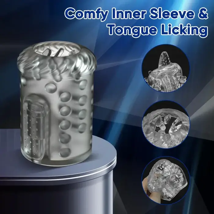 【Premium Soft TPE Material】Crafted from soft and body-friendly TPE material, the inner cup and sleeve provide superior comfort and enjoyment. They provide additional stimulation as the device thrusts and rotates, designed with a soft tongue and dozens of raised bumps.
